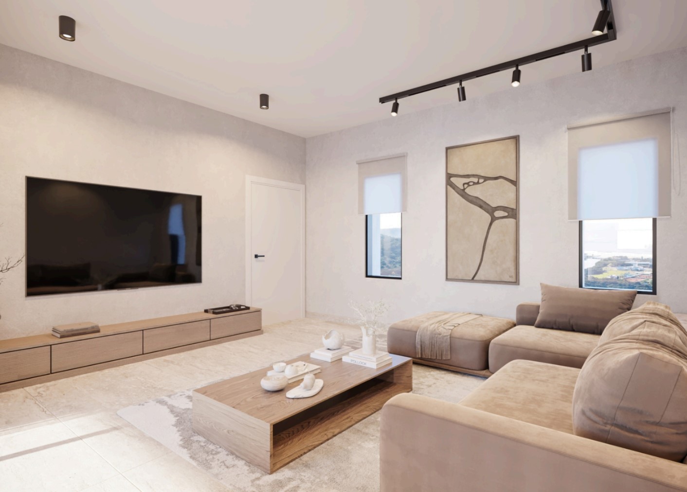 تتميز الشقة بتصميم داخلي حديث يفيض بالأناقة والبساطة الراقية، مع إضاءة طبيعية وافرة بفضل النوافذ الواسعة التي تطل على البحر الأبيض المتوسط.