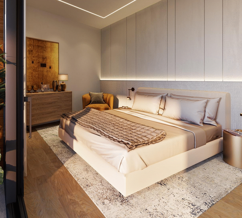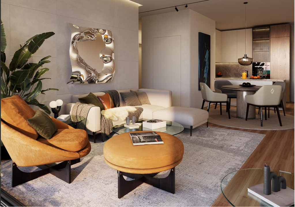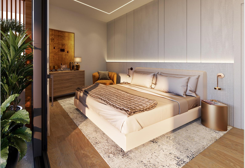 مجموعة متنوعة من التصميمات، من شقق بغرفة نوم واحدة إلى ثلاث غرف نوم، جميعها تتميز بمساحات معيشة مفتوحة مع نوافذ بانورامية.
