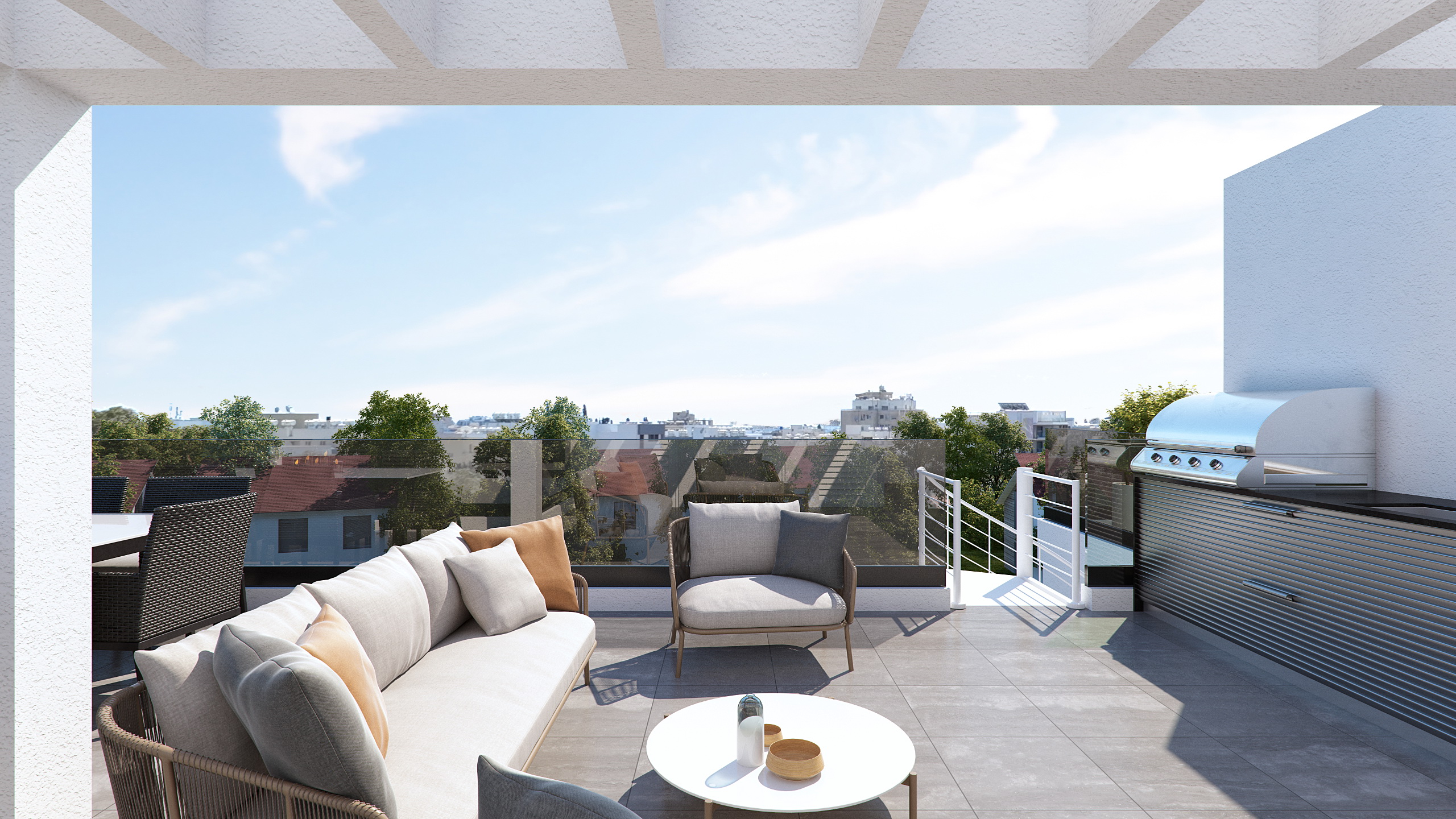 يضم المشروع مبنى سكنيًا عصريًا بشقق من غرفة نوم واحدة أو غرفتين. تحتوي كل شقة على مطبخ مفتوح على غرفة المعيشة، بالإضافة إلى غرف نوم واسعة وحمامات مصممة بشكل أنيق. بعض الشقق مزودة بميزات إضافية مثل حمامات داخلية أو شرفات بإطلالات بحرية